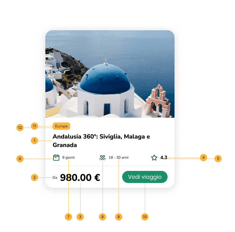 The entire card structure follows a precise visual hierarchy, guiding the user’s gaze from the most evocative information to the more practical details, ensuring an intuitive and inclusive navigation experience.